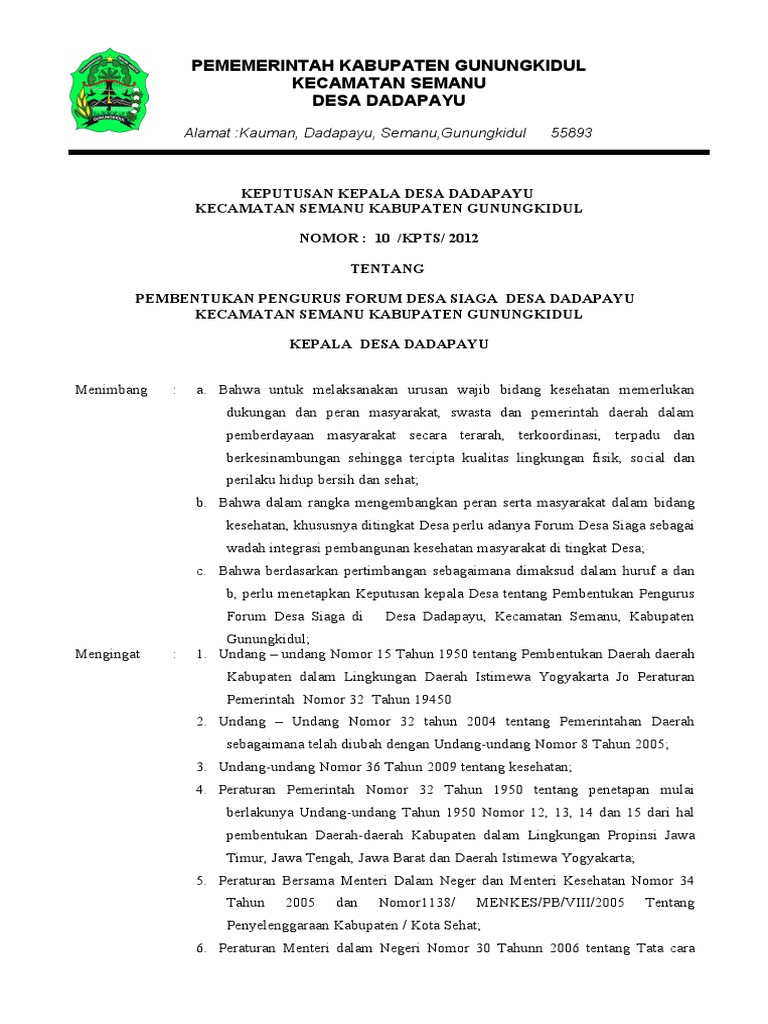 Bahwa dalam rangka percepatan pencapaian kelurahan sehat, kecamatan sehat, kota sehat, cepu sehat, jawa tengah sehat dan indonesaia sehat , disadari perlunya dibentuk dan dikembangkannya. Umumnya desain rumah sederhana di kampung masih menganut ide tradisional di mana rumah adalah tempat bernaung bagi keluarga. Savesave contoh sk forum kesehatan desa (fkd) for later.