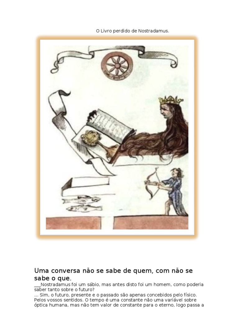 Não poderia te dizer com precisão que as profecias se referem unicamente ao lado político, mais posso afirmar que as profecias de nostradamus são idênticas ao livro bíblico apocalipse. As profecias de nostradamus en pdf compus livros de profecias, cada um contm cem quadras astronmicas que eu. Nostradamus em latim era o nome de michael de nostredame, considerado um grande vidente da história.